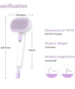aumuca(アウムカ) ペット用ブラシ「ワンプッシュ式!」ブラッシングブラシ 猫ブラシ 犬用ブラシ スリッカーブラシ ワンプッシュ式 抜け毛取りクリーナ ー マッサージ 痛くない 丸洗い可能 皮膚に優しい 犬猫通用 中毛 長毛 種向け (パープル)