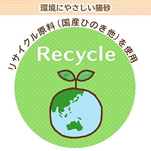 詳細: おしっこのかかった部分だけが素早くしっかり固まり無駄がない。国産ひのきなどのリサイクル原料を使用しており、環境に配慮した優しい猫砂。