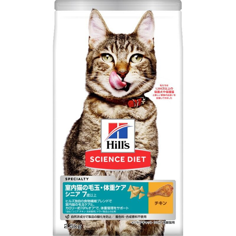 ヒルズ サイエンス・ダイエット (まとめ買い)日本ヒルズ 室内猫の毛玉・体重ケア シニア 7歳以上チキン 2.5kg 猫用フード 【×3】