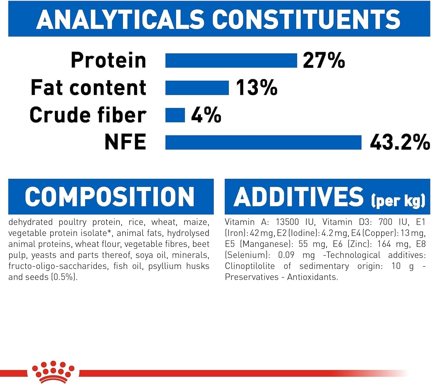 - 栄養成分:粗タンパク(%以上)25.0%以上、粗脂肪(%以上)11.0%以上、粗灰分(%以下)7.6%以下、粗繊維(%以下)5.2%以下、水分(%以下)8.5%以下