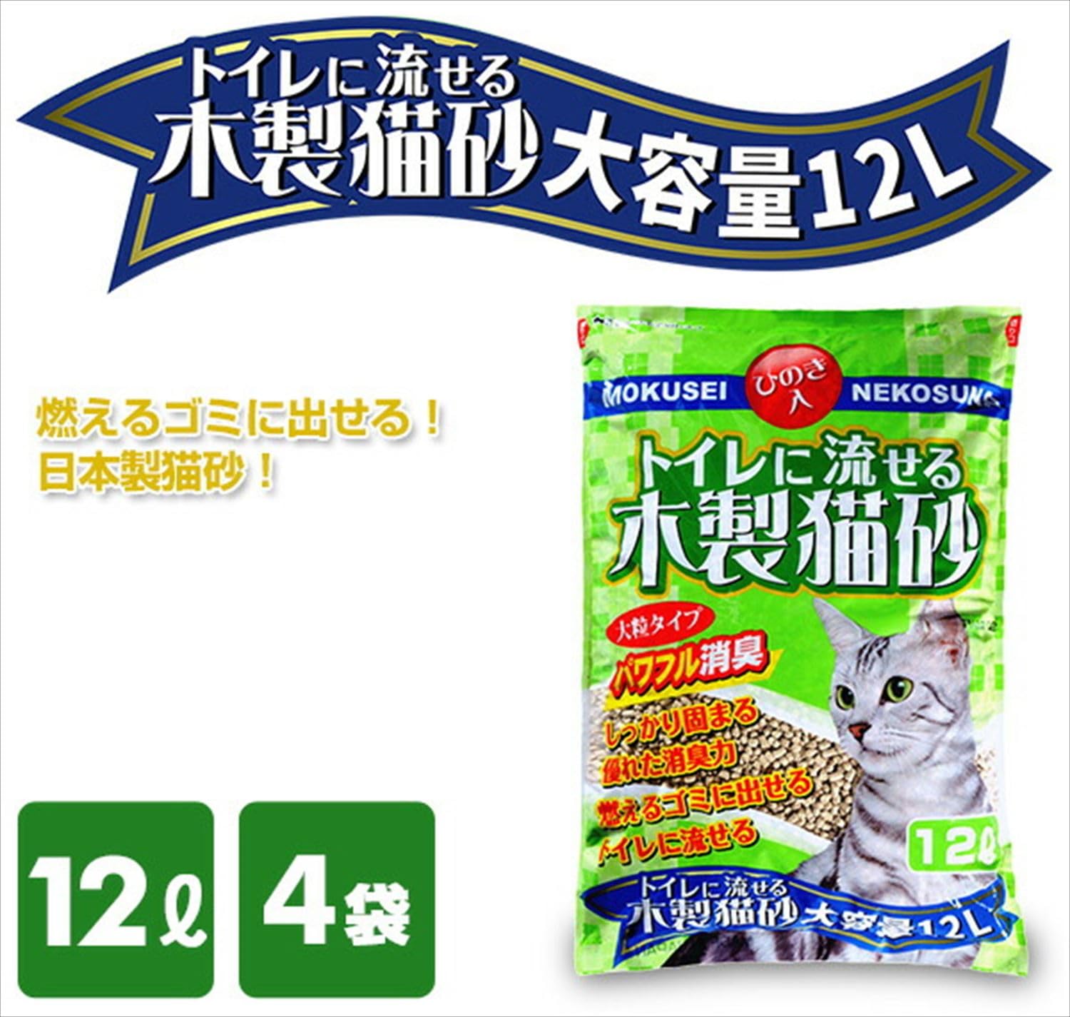 常陸化工 トイレに流せる木製猫砂 12L×4個