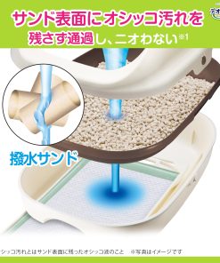 - 撥水サンドで、サンド表面にオシッコ汚れを残さず通過し、ニオわない※1 ※1オシッコ汚れとはサンド表面に残ったオシッコ液のこと