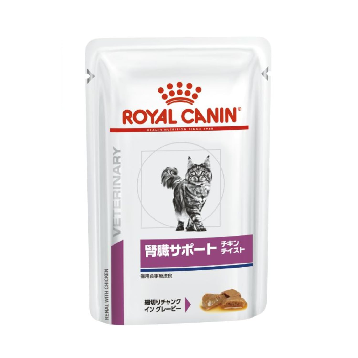 猫用 腎臓サポート チキンテイストは、慢性腎臓病の猫に給与することを目的として、特別に調製された食事療法食です。この食事は、高消化性のタンパク質を配合し、リンの含有量を制限しています。