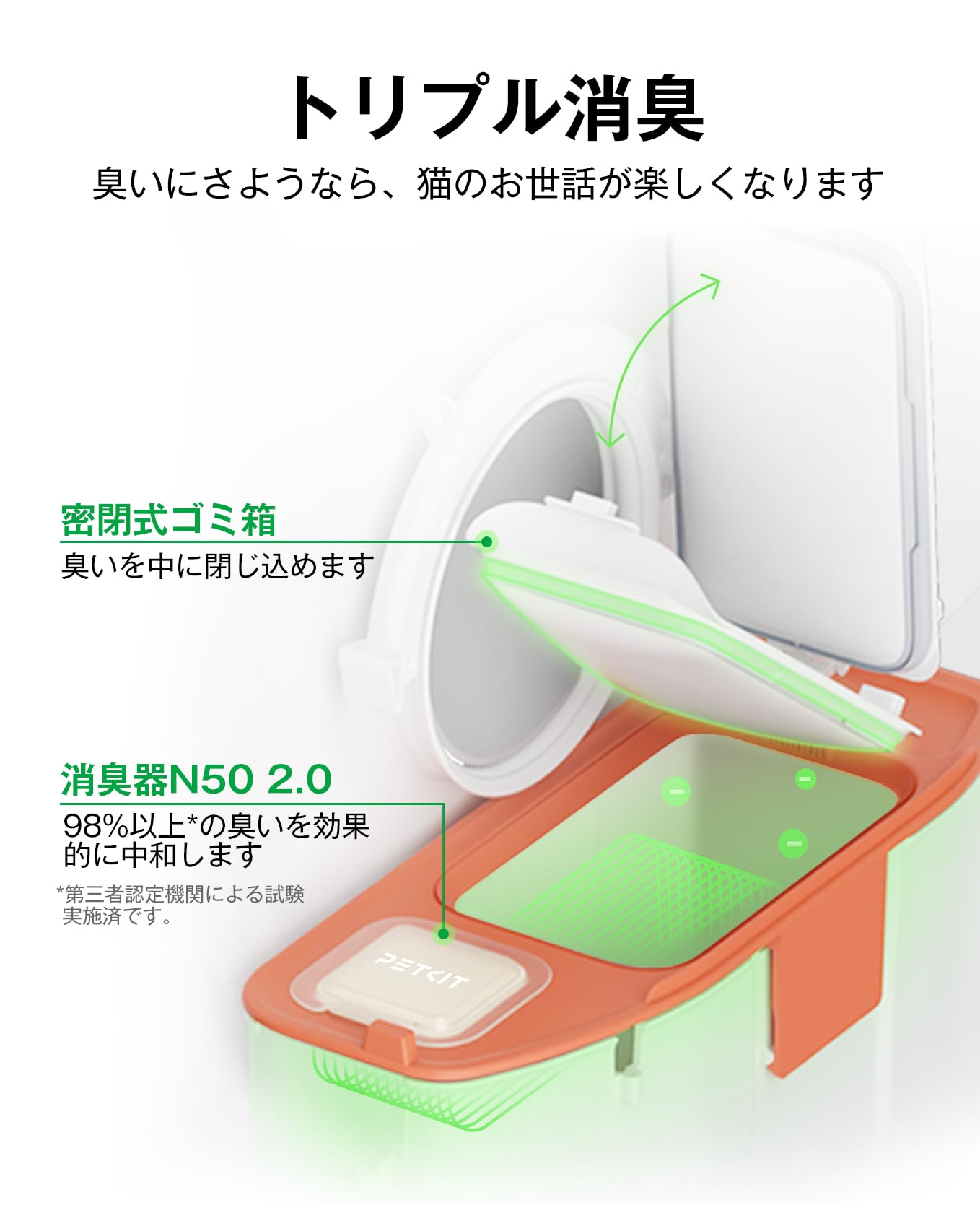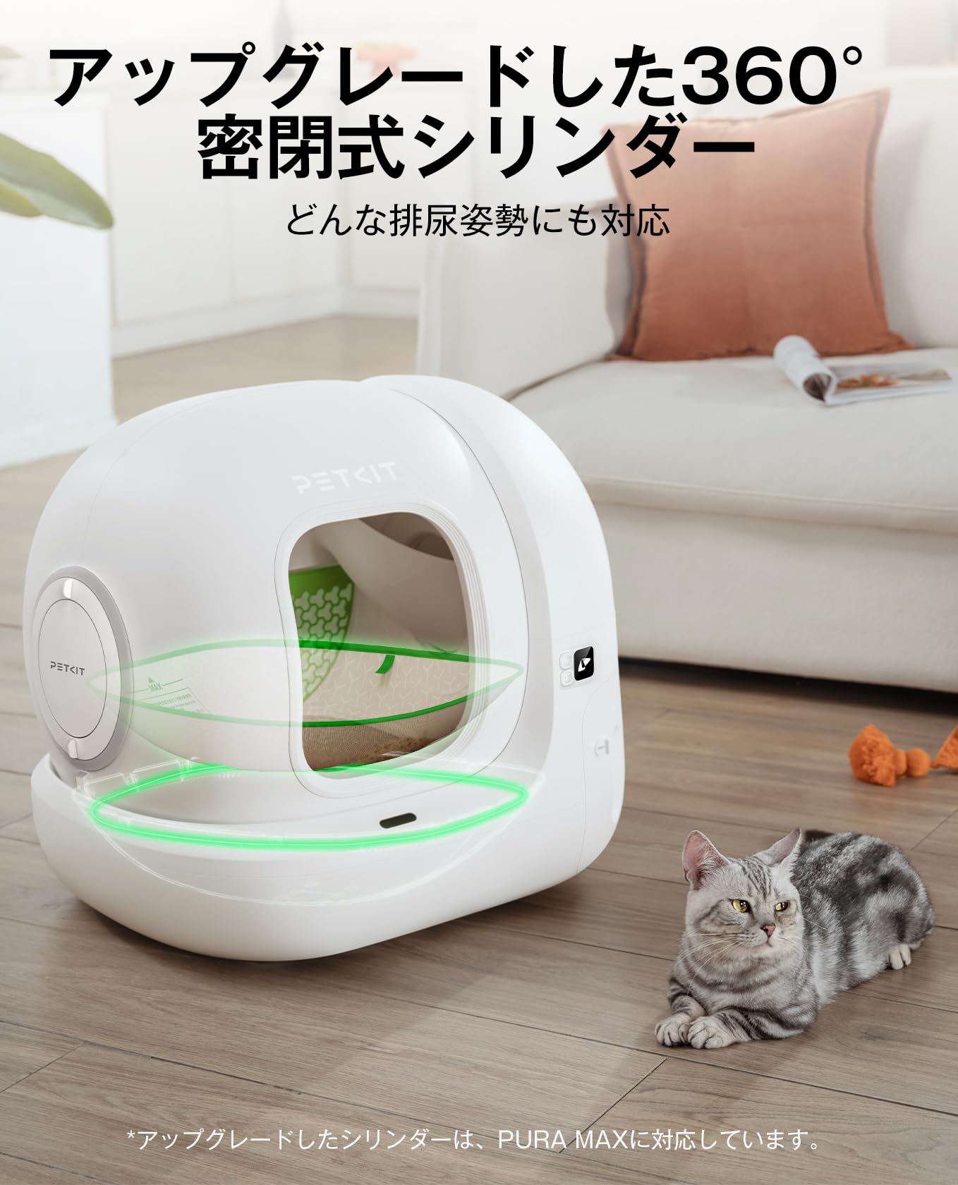 PETKIT 猫 トイレ 自動トイレ オシッコが漏れない アップグレードしたシリンダ スマホ管理 センサー付き 飛散防止 自動清掃 定期清掃 掃除簡単 お留守番 専用APP IOS/Android対応 日本語説明書付き 76L の大容量 自動トイレ PURE MAX2