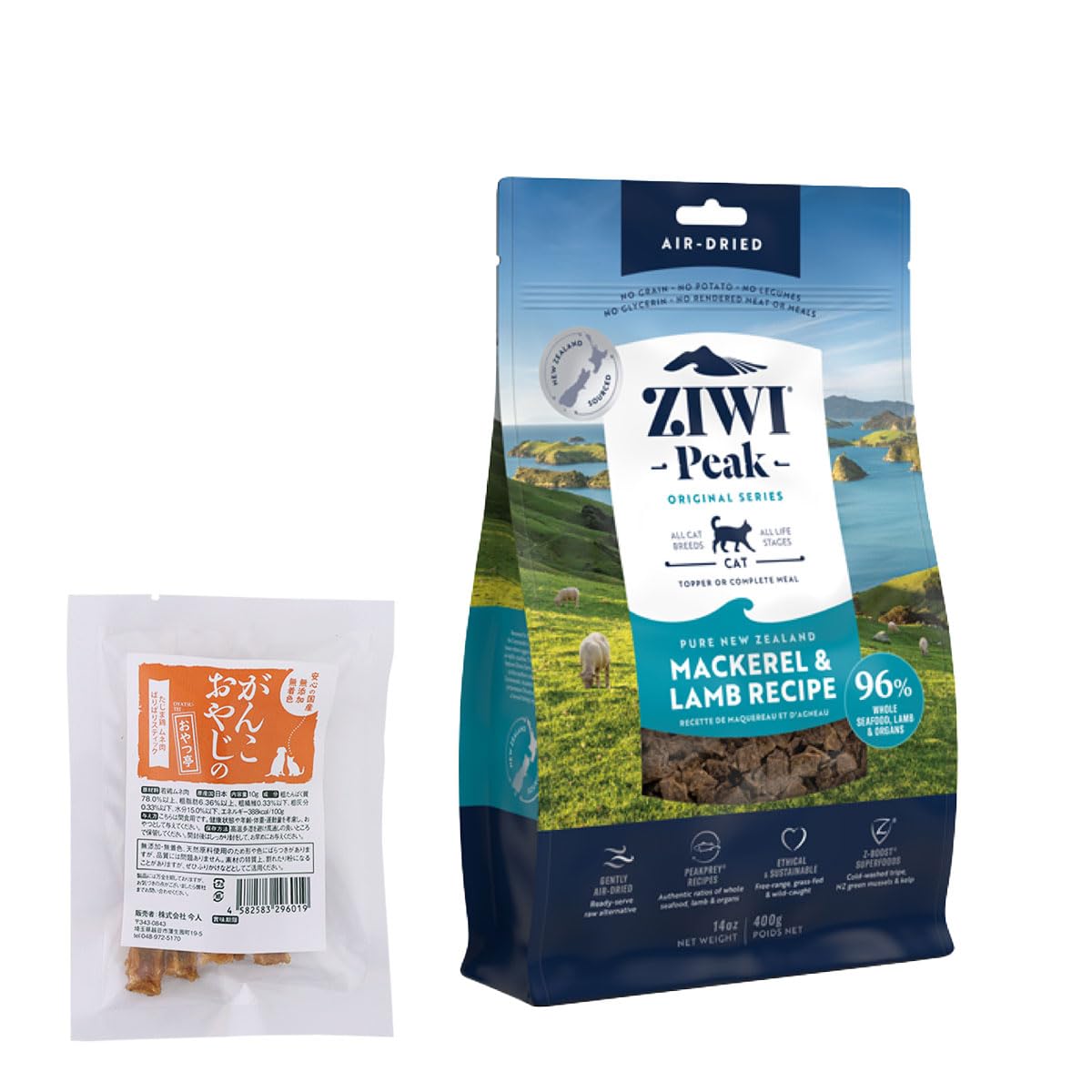 ZiwiPeak ジウィピーク エアドライ キャットフード マッカロー&ラム 400g+がんこおやじのおやつ亭国産たじま鶏ジャーキー(小サイズ)